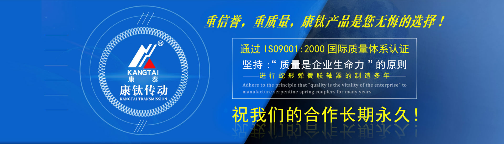 溫州康鈦傳動(dòng)機(jī)械有限公司(原瑞安市康泰機(jī)械制造有限公司)是一家專業(yè)研發(fā)、生產(chǎn)與銷售機(jī)械傳動(dòng)配件的技術(shù)企業(yè)。公司自成立以來(lái),憑借著優(yōu)秀的品質(zhì)、完善的服務(wù)贏得了良好的市場(chǎng)聲譽(yù),我們長(zhǎng)期為國(guó)內(nèi)國(guó)際眾多設(shè)備制造廠家提供各種傳動(dòng)配件,主要產(chǎn)品有:脹緊聯(lián)結(jié)套、逆止器、彈性聯(lián)軸器、鎖緊盤、蛇形彈簧聯(lián)軸器、膜片聯(lián)軸器、鼓形齒式聯(lián)軸器等傳動(dòng)件,為客戶提供一站式銷售安裝調(diào)試服務(wù),產(chǎn)品廣泛應(yīng)用于礦山、電力、冶金、起重、造紙、印刷、包裝等機(jī)械行業(yè)。...